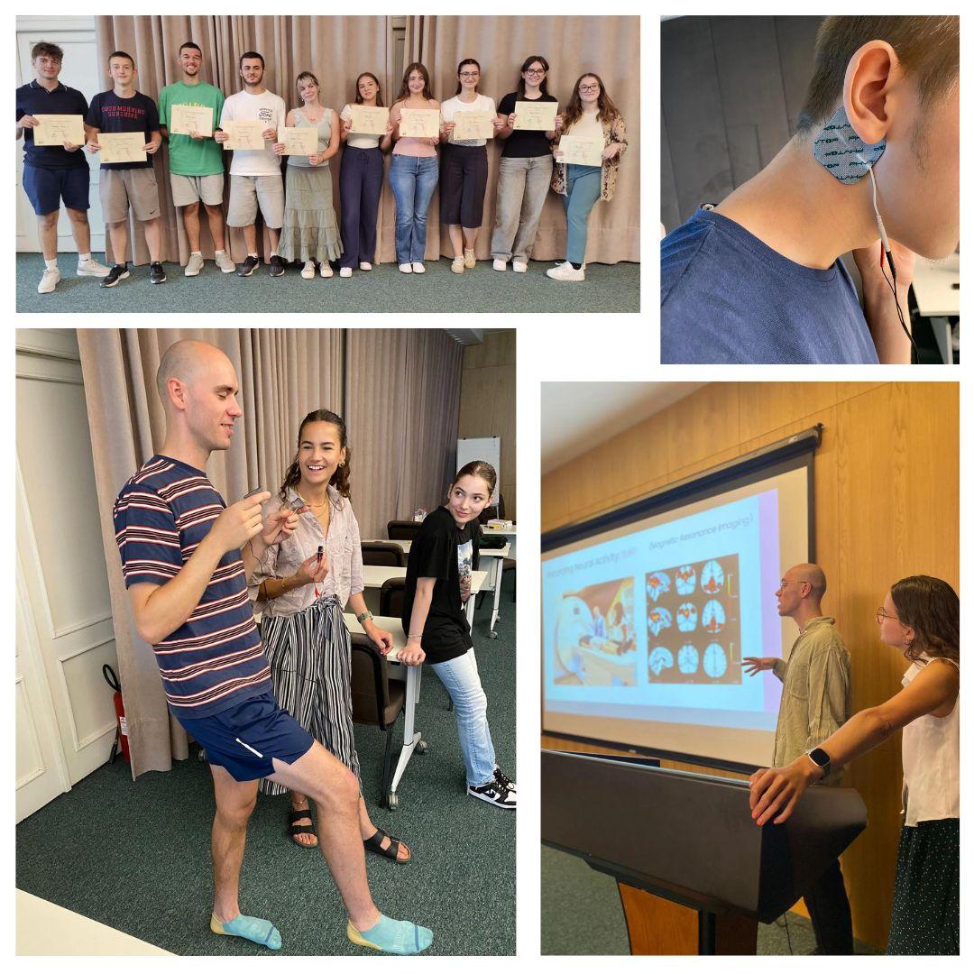 The seventh BrainCamp Kosovo took place from 15-19 July, 2024. Founded and organised by SWC PhD alumni Egzona Morina, the camp aims to introduce neuroscience education and career opportunities to young people in Kosovo. This year’s event expanded on previous editions, bringing together 59 high school students from Prishtina, Prizren, and the ATOMI Institute. Over the course of the week, participants aged 14-18 engaged in lessons on neuroscience, covering topics such as cell types and their functions, neural communication, and artificial intelligence. Using EmotiBit, a wearable mini-computer with sensors, students also conducted biofeedback experiments. The event was supported by additional SWC teaching volunteers, including Sarah Olesen, Joseph Cohen, Emmett Thompson, Francesca Pozzolo, and Orsolya Folsz.