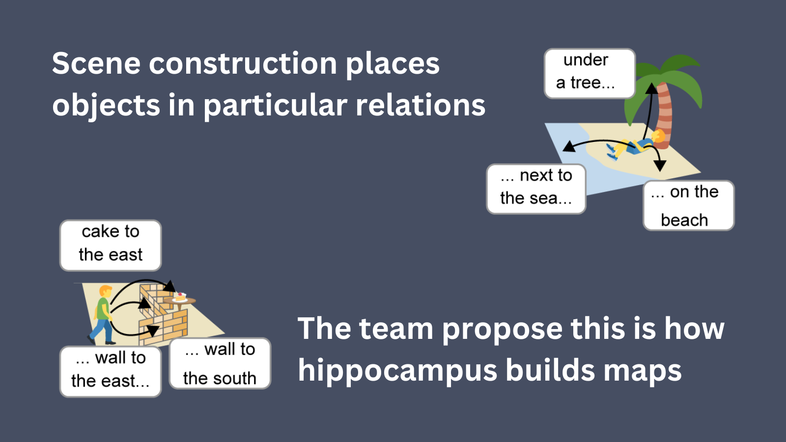 More recent patient studies have also shown that damage to the hippocampus hinders the ability to imagine new experiences. For example, if I asked you to describe being in a museum, you would likely visualise an imaginary scene from familiar elements such as corridors, groups of people and so forth. However, individuals with hippocampal damage may struggle to do so, which is referred to as a deficit in scene construction.