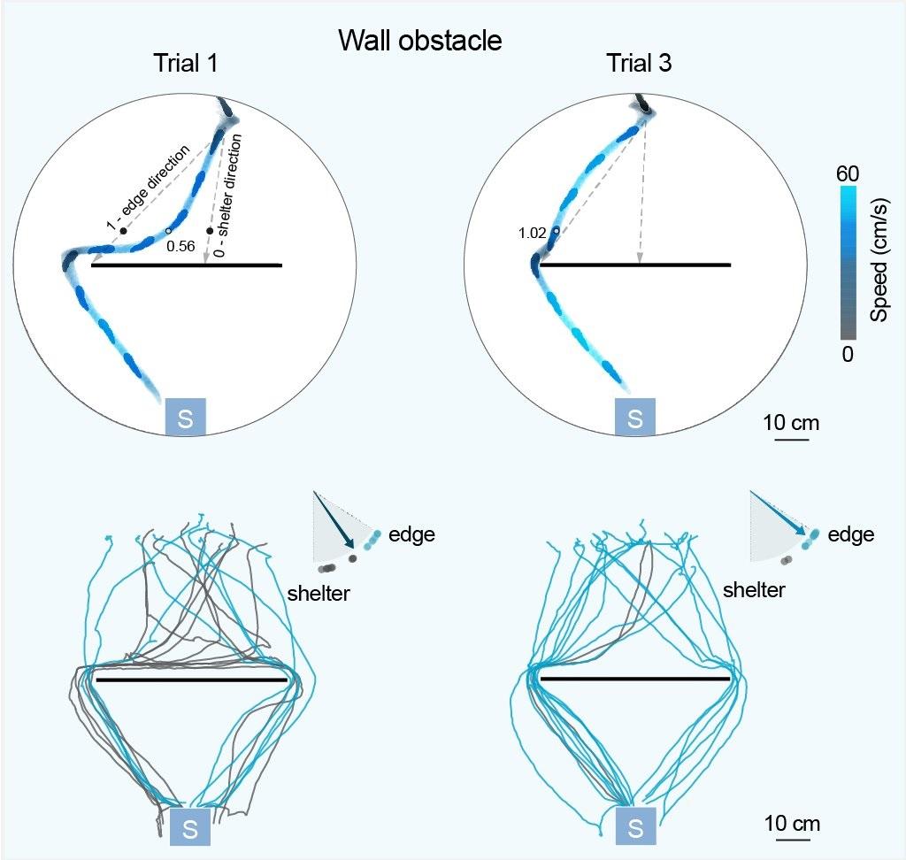 From Shamash et al. 'Mice learn multi-step routes by memorizing subgoal locations' (2020). The study found that mice spontaneously learn a subgoal memory strategy when escaping to shelter or seeking a food source in environments with obstacles.