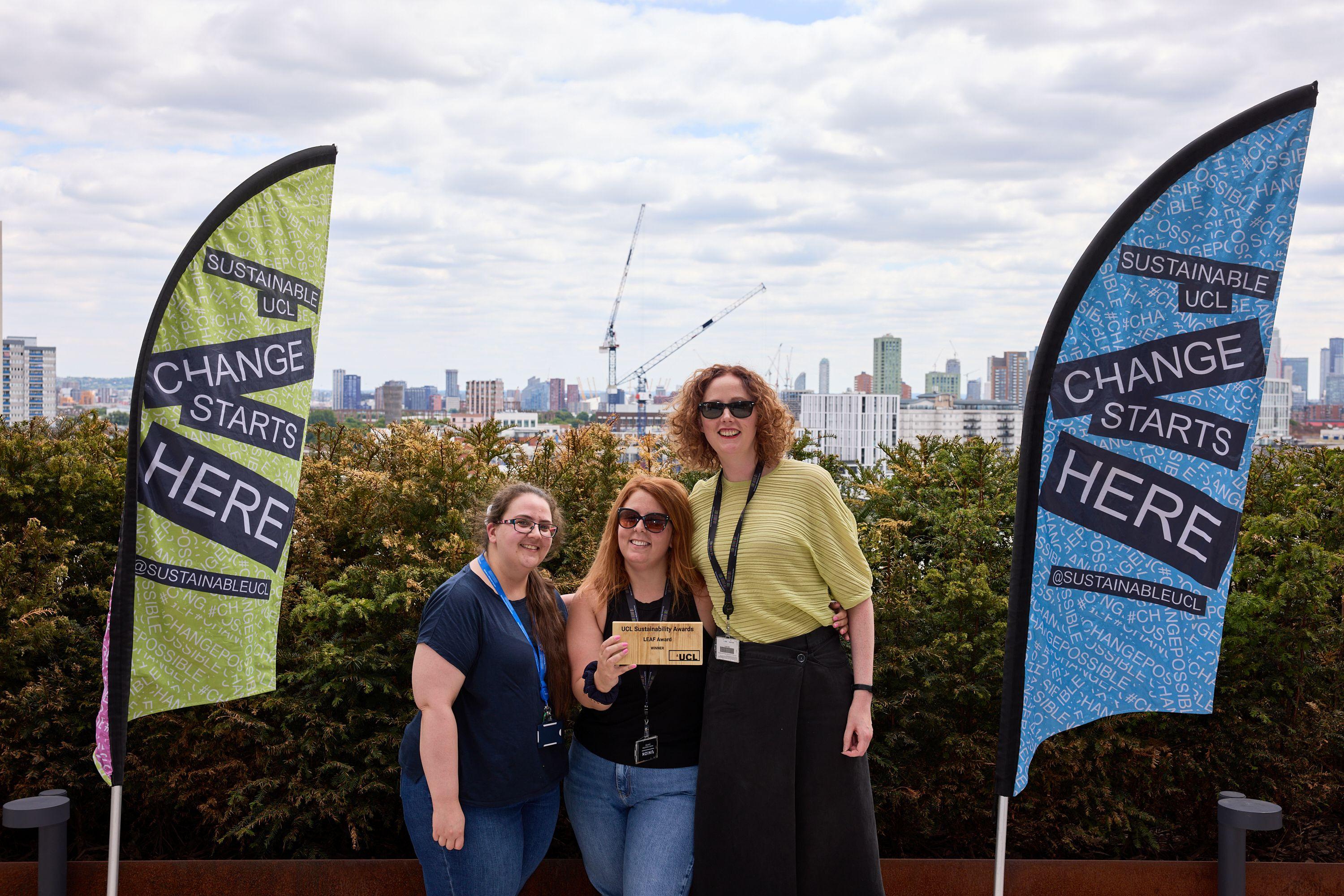 Jennifer McGuinness, Yiota Iordanidou and Eve McLoughlin at the UCL Sustainability Awards, 2025.