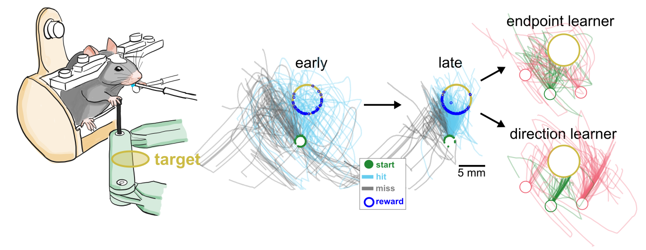 My goal is to dissect the sensorimotor areas controlling different aspects of these movements, and probe what determines the learning of different reach strategies.