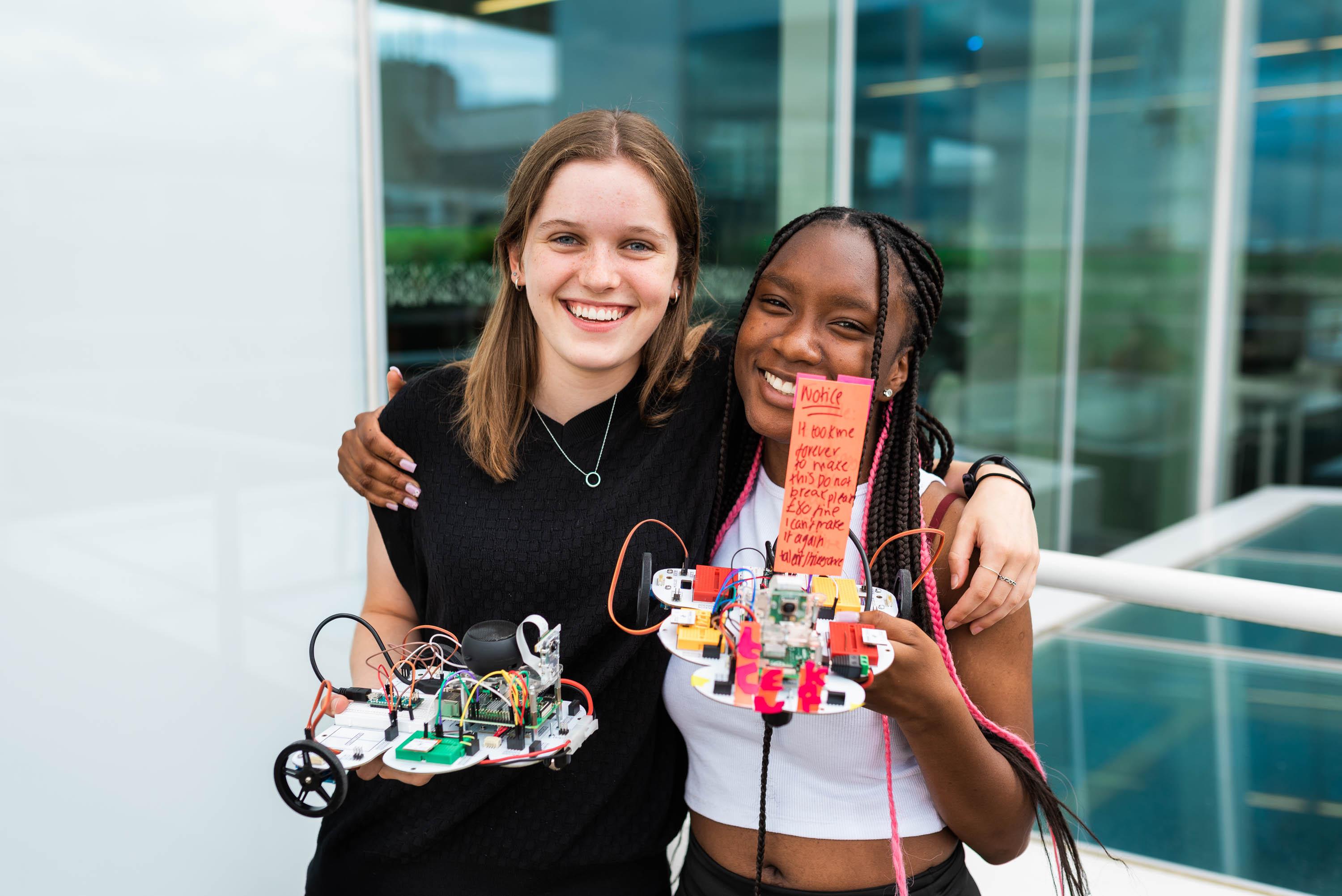 - On Day 4, students learned basic techniques and algorithms for processing audio and visual data, and added cameras and microphones to their bots.
