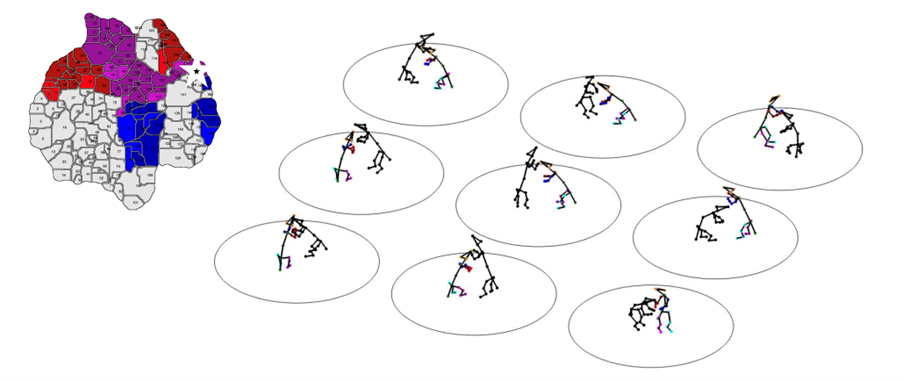 This had eluded researchers for a long time. Similar to the challenges faced in Parkinson's models, traditional coarse metrics failed to capture consistent differences in social behaviour across groups compared to wild type controls. If you're solely focused on low-dimensional metrics like the time spent next to a social partner, it is difficult to measure significant differences between these groups. With a more precise decomposition of the social behavioural space into specific interaction categories, a consistent, significant difference emerges.