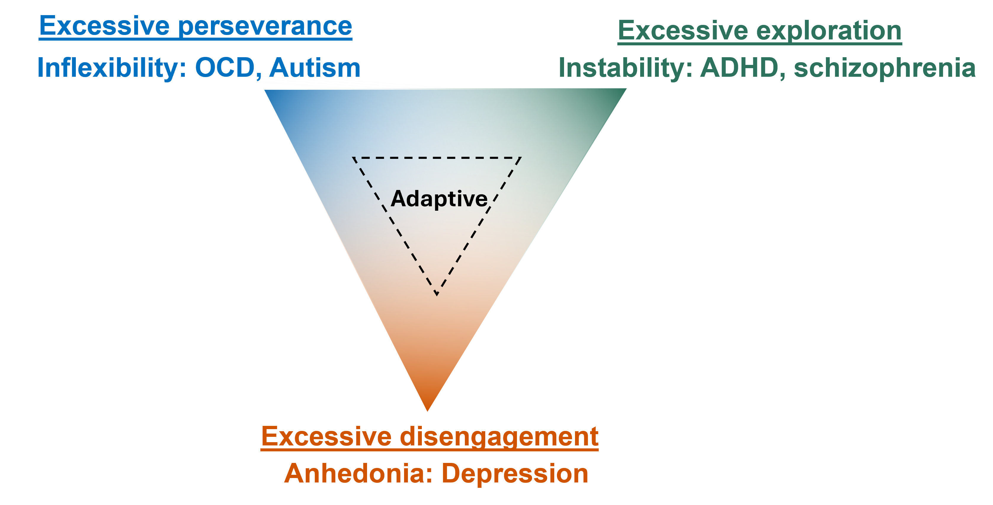 The neural circuits revealed in this study may help to further understand a number of neuropsychiatric conditions. For instance, an overly high drive to persist in familiar actions and repetitive behaviours can be observed in OCD and autism, while pathological disengagement and lack of motivation is one symptom of major depressive disorder. Changes in the firing rate of specific median raphe cell types could therefore contribute to certain aspects of these conditions.
